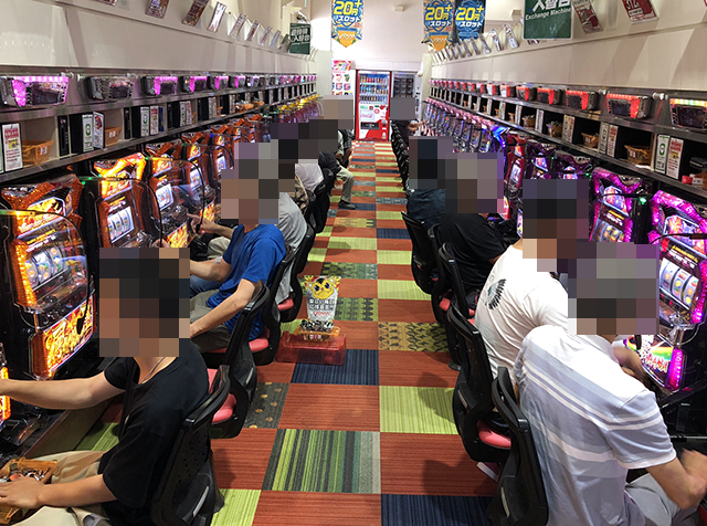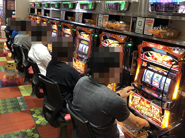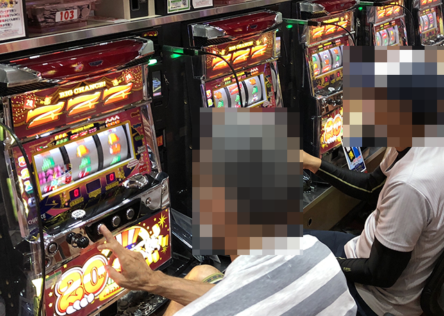 なかでも、印象に残っているのは『アイムジャグラーEX AnniversaryEdition』で遊技を楽しむプレイヤー。