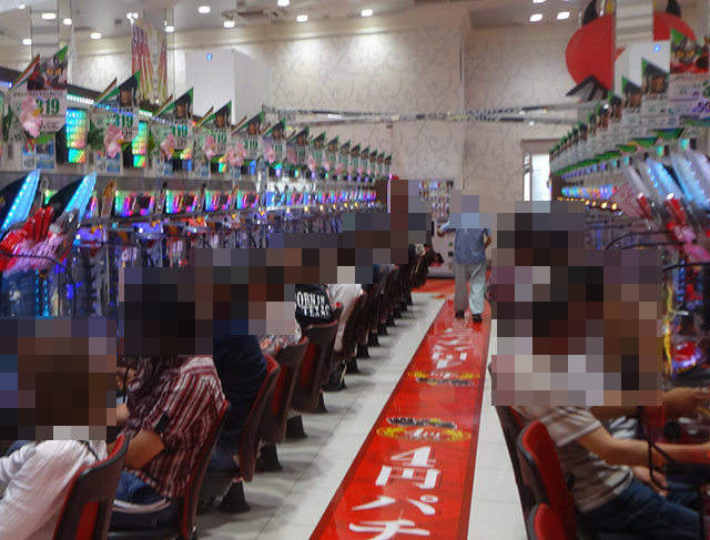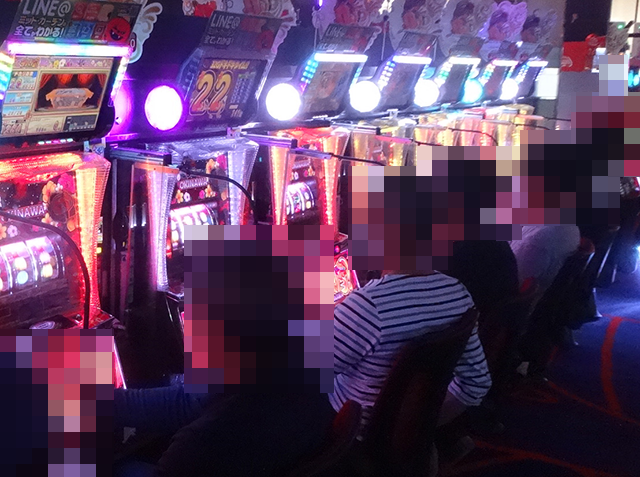 パチンコとパチスロの両方が多くのプレイヤーでにぎわい、輝かしい笑顔がみられた。