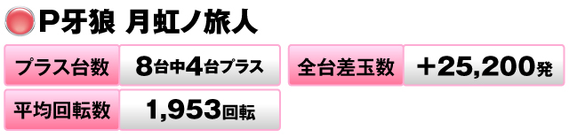 8台中4台がプラスで全台差玉数は+25,200発だった。
