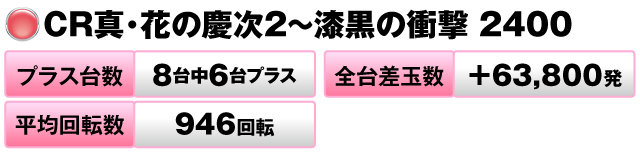 パチンコでは、『CR真・花の慶次2〜漆黒の衝撃 2400』が大活躍。