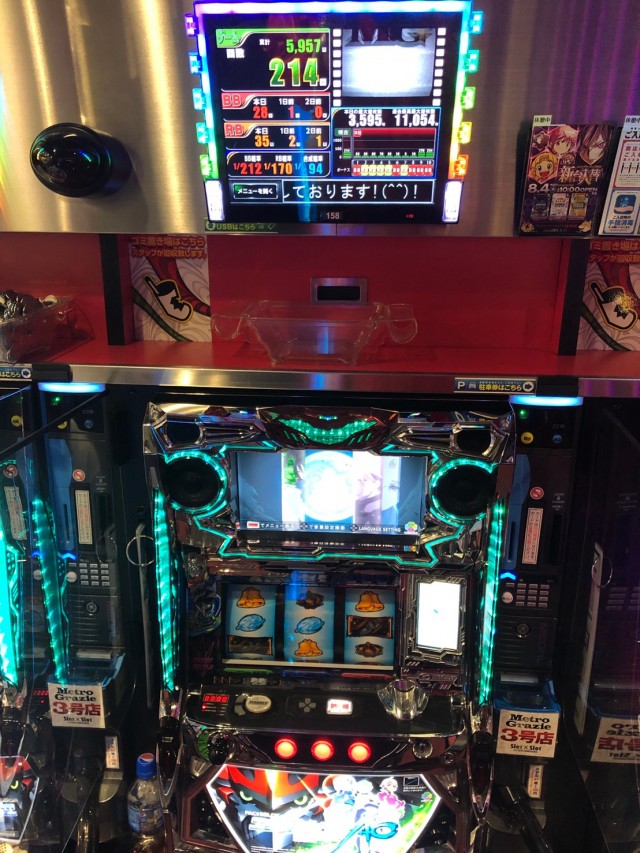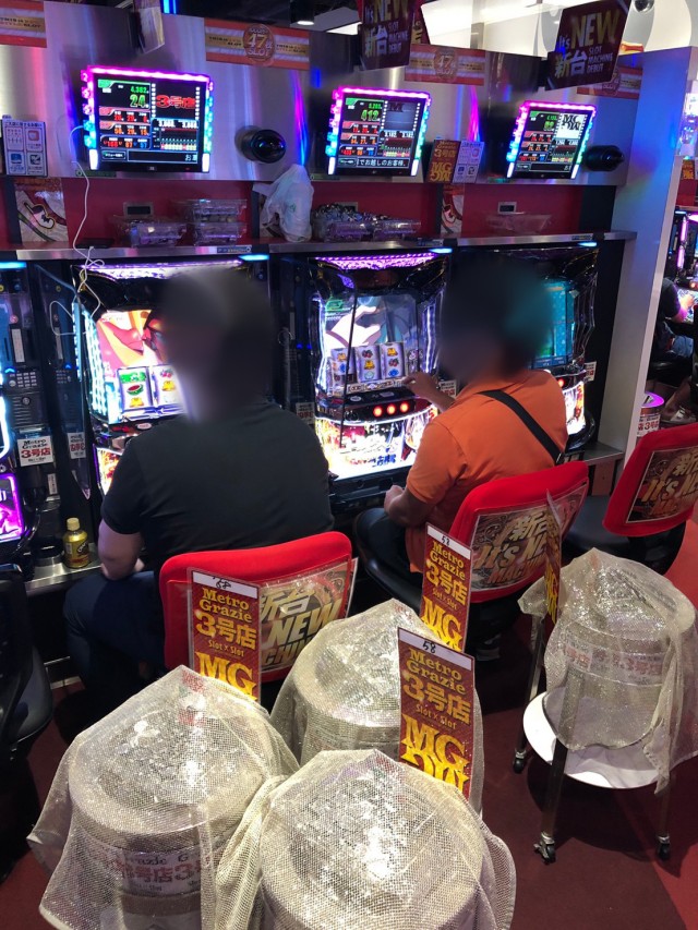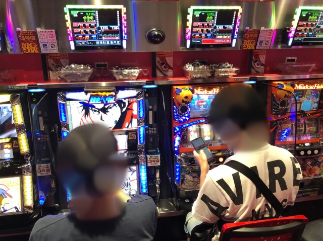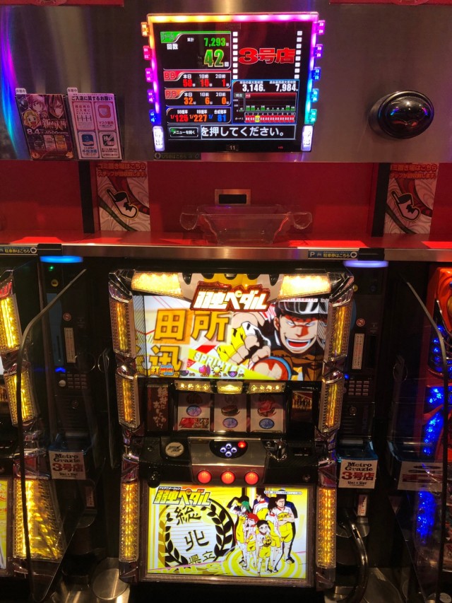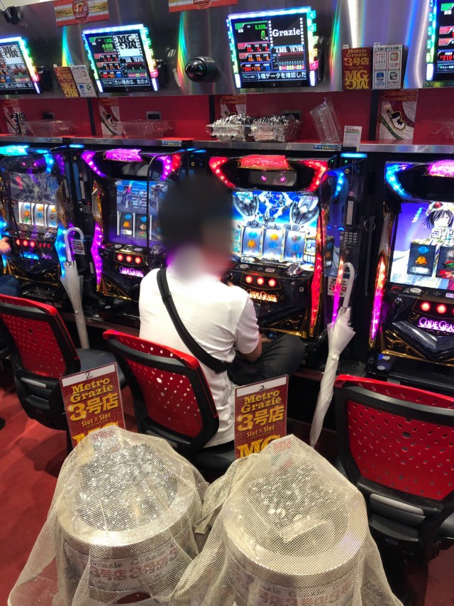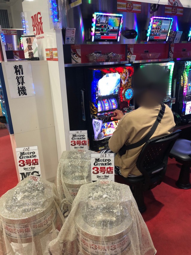 さて、当日の注目は2機種だけにあらず。店内を見渡せばドル箱が咲き乱れ、激闘を繰り広げた結果が台上カウンターに残っていた。
