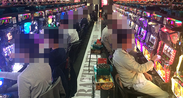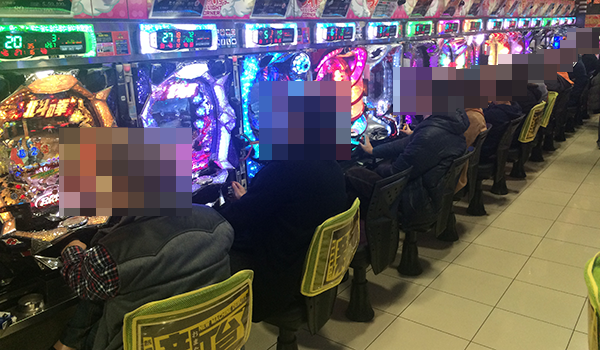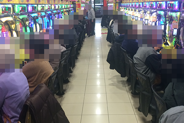 1円パチンコと0.5円パチンコの低貸し玉コーナーも、空き台を探すほうが難しいほどに、にぎわっていた。