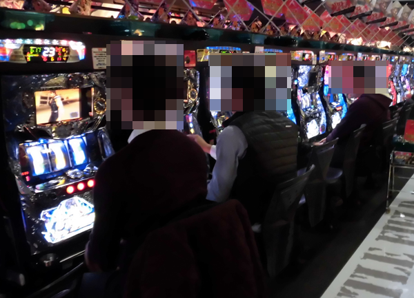 ジャグラーシリーズや「パチスロ北斗の拳 転生の章」も好評で、機種の魅力を引き出しているプレイヤーが多数。充実した表情を浮かべるプレイヤーも目立ち、シマ全体が楽しい雰囲気に包まれていた。