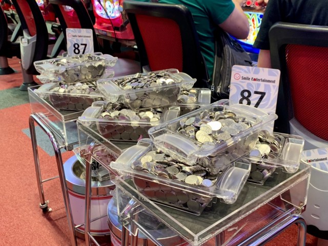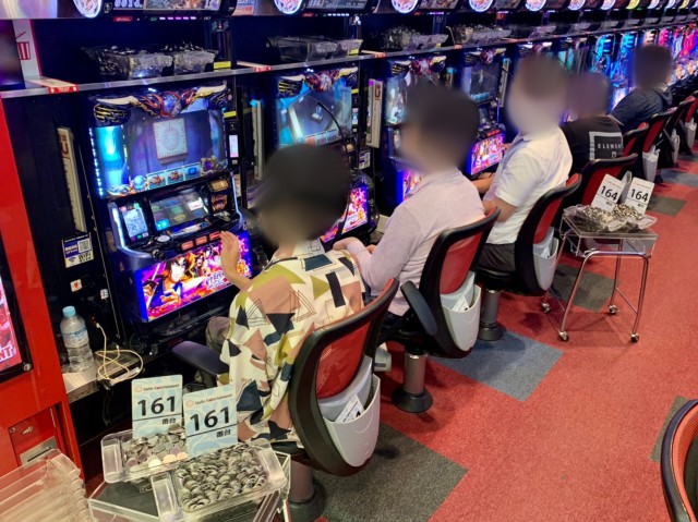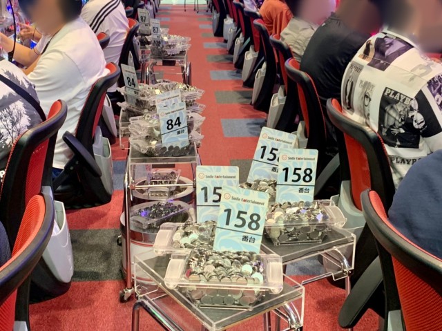 また、上に挙げた5機種以外にも大量メダル獲得台が複数。ドル箱は1つのみならず、2~3と重ねて使用する台も珍しくない状況だった。