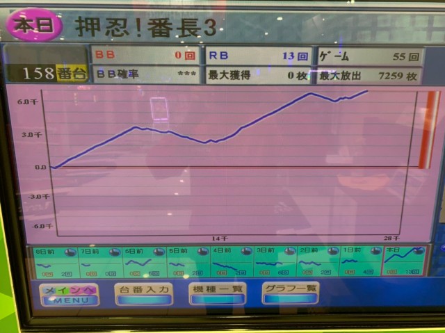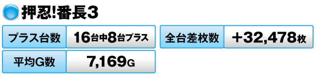 12台の内3分の2がプラス、平均ゲーム数は7,000G弱、全台差枚数はプラス16,000枚超の大仕事!