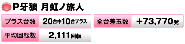 まずは同店に20台設置、導入開始から2ヶ月近く経ち主力機種と化している『P牙狼 月虹ノ旅人』をチェック。