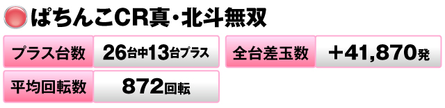 こちらも全体の半数がプラス台、全台差玉数は+40,000発超を達成した。