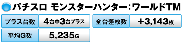 さらに注目したいのは全台差枚数プラス3,000枚クラスとなった2機種。『パチスロ モンキーターンⅣ』『パチスロ モンスターハンター:ワールドTM』 だ。