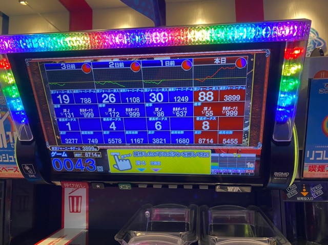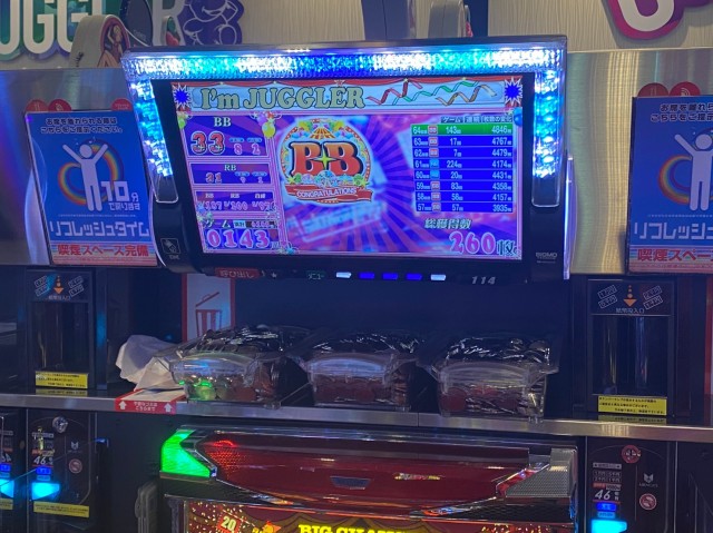 メダルを吐き出していたのは上記8機種だけではない。8タイトルを超えるジャグラーシリーズなど、当日は店内の至る所でドル箱の花が乱れ咲いていた。