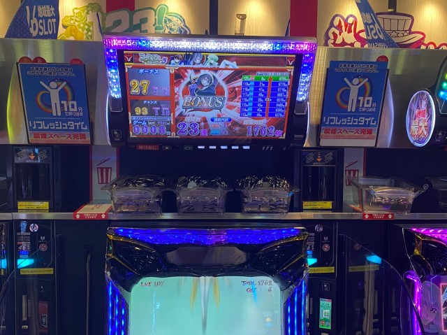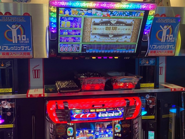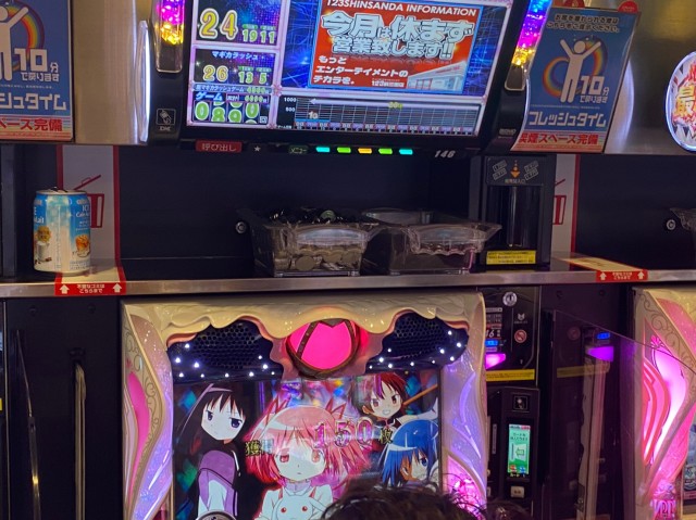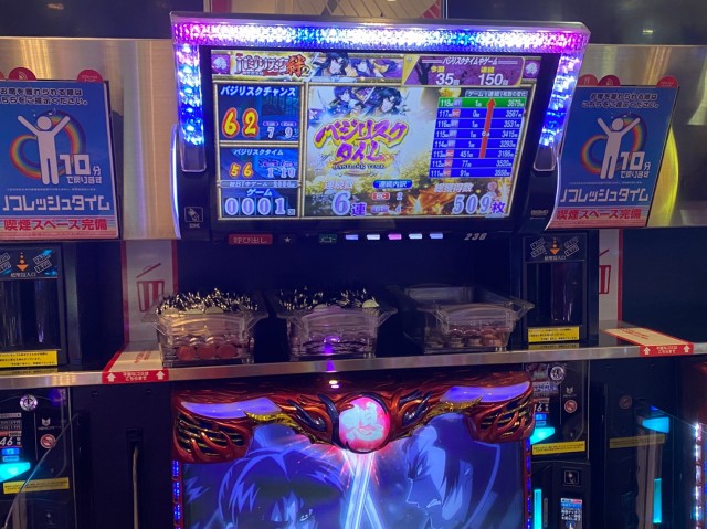 当日は新台導入間もなかった『SLOT劇場版 魔法少女まどか☆マギカ[前編]始まりの物語/[後編]永遠の物語』と12台設置のベテラン機種『SLOTバジリスク~甲賀忍法帖~絆2』だ。