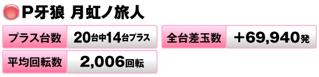 16台中9台と半数以上がプラス、平均ゲーム数は約7,000G、そして全台差枚数はプラス20,000枚を突破!