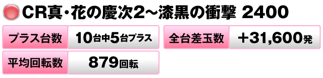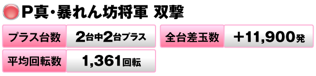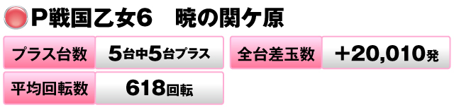 一方後者は、5台全台がプラス、平均回転数は少なめだったが、一撃に恵まれプラス2万発超の結果を残した。