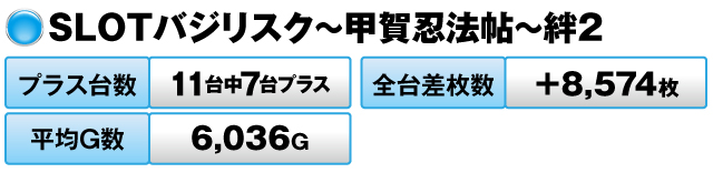 全体の6割超がプラス、平均ゲーム数は6,000G超、全台差枚数はプラス約8,500枚を達成した。