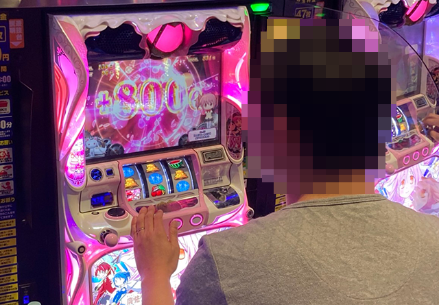 「パチスロ笑ゥせぇるすまん3~笑撃のドーン~」でも、うれしそうに遊技をおこなう姿を発見。