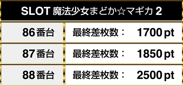『SLOT魔法少女まどか☆マギカ2』に1700pt、1850pt、2500ptが並ぶ!!