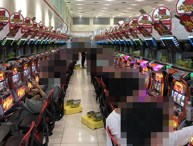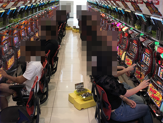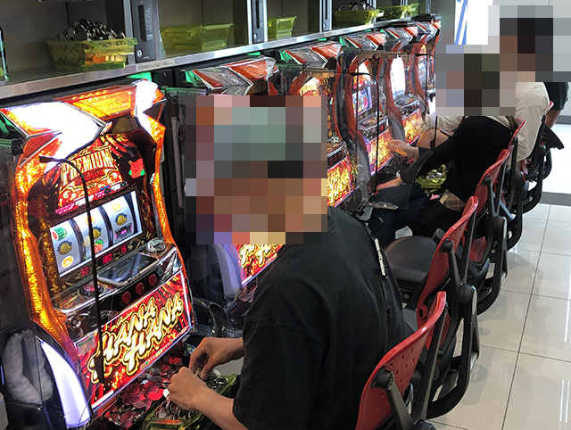パチスロのなかで、設置台数がもっとも多い「プレミアムハナハナ-30」も存在感がバツグン。大きな盛り上がりが感じられる状況となっていた。