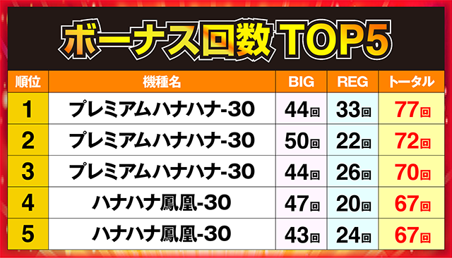 「プレミアムハナハナ-30」が1位から3位までにランクイン!