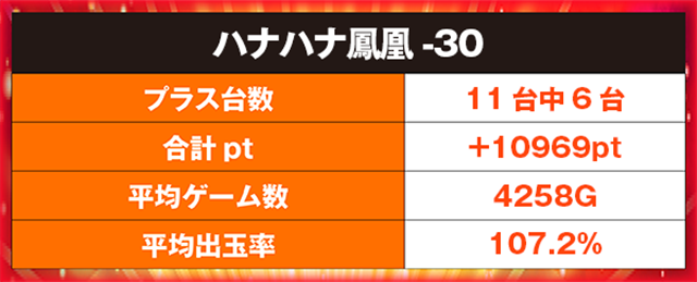 閉店時には、機種全体で+10969ptを記録。半数以上の台がプラスでこの日を終えた。