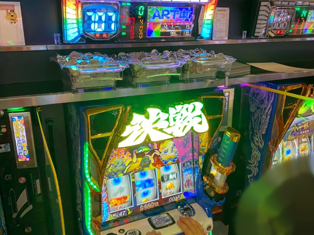 また、注目は上の5機種だけではない。店内はまさにドル箱が百花繚乱! 特に『パチスロ北斗の拳 宿命』と『押忍!番長3』の盛り上がりは『マイジャグⅢ』や『北斗天昇』に匹敵する勢いであった。