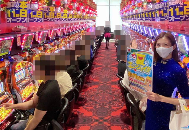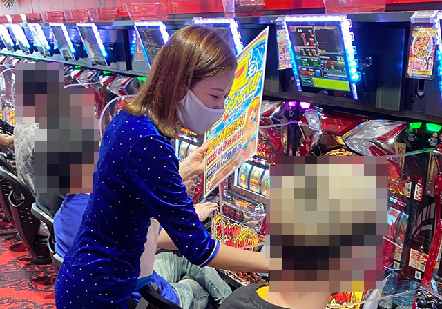 パチスロコーナーでは、ちかちゃんが実戦機種に選んだハナハナシリーズが大盛況!