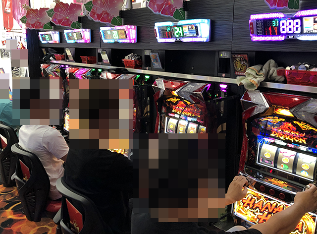 3台が設置されている「ハナハナ鳳凰-30」に空き台はなく、全台で笑顔のプレイヤーを目撃。機種の魅力を味わい、遊技を満喫していたように思う。