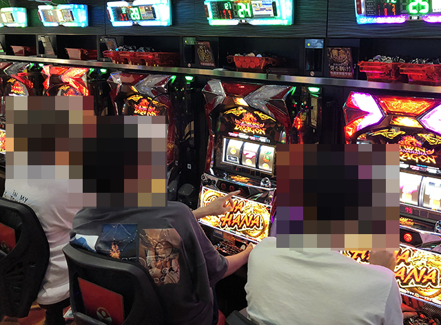 15時に近づいてきた頃の「ツインドラゴンハナハナ-30」では、多くのプレイヤーが活躍。満面の笑みを浮かべている姿からは、有意義な時間を過ごしていることも伝わってきた。