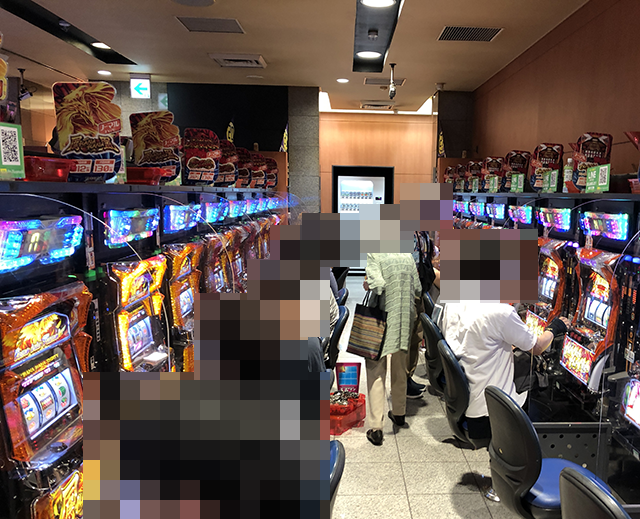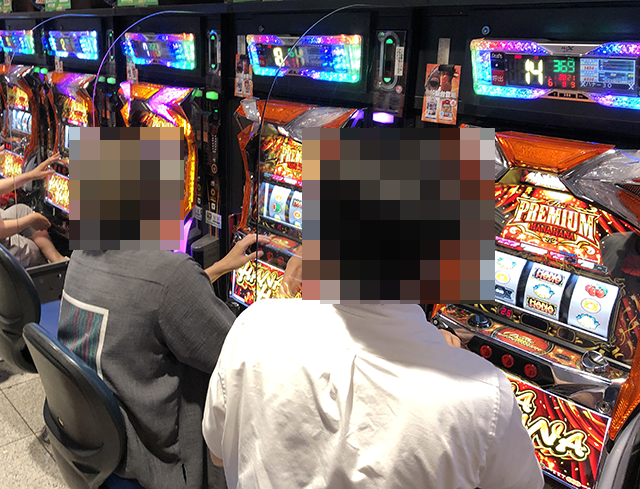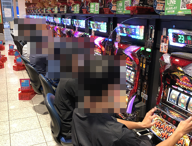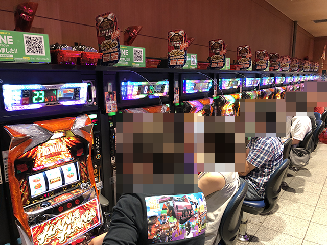 7台が設置されている「プレミアムハナハナ-30」には6名のプレイヤーが着席しており、大きな活気が感じられた。