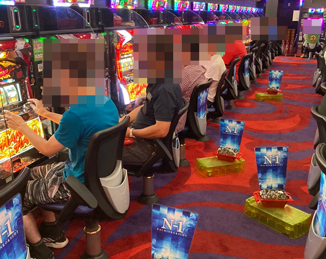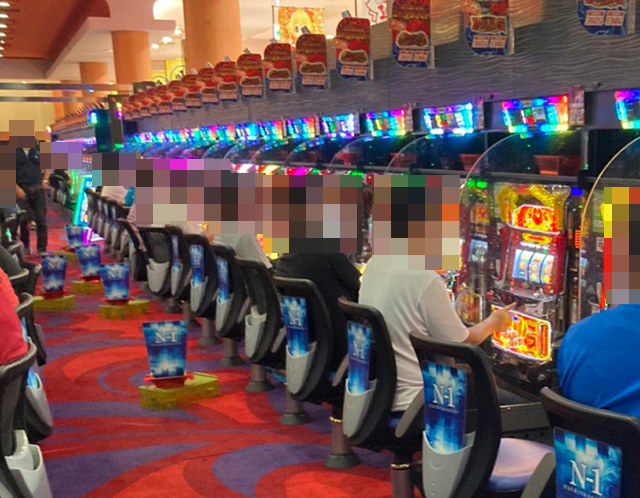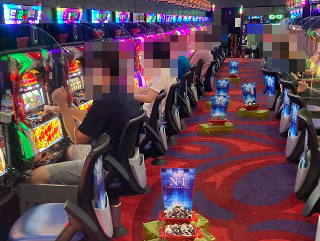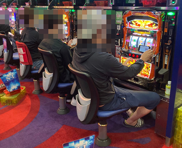 14台が設置されている「ツインドラゴンハナハナ-30」には9名が座っており、どのプレイヤーも楽しげな様子。晴れやかな表情からも、満足度の高さがうかがえた。