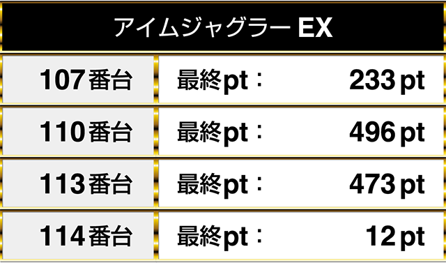 おなじく、10台設置の『アイムジャグラーEX』も4台がプラスptを記録!