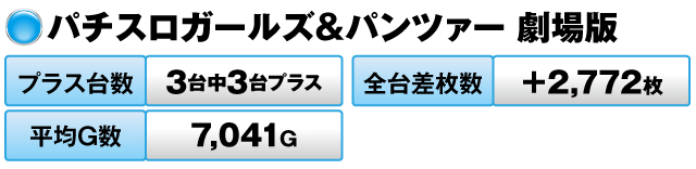 その他、『政宗3』、『ツインドラゴンハナハナ-30』、『アイムジャグラーEX』、『パチスロガールズ&パンツァー 劇場版』、『サンダーVリボルト』、『吉宗3』が盛り上がりを見せていた。