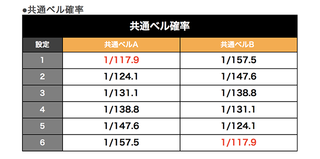チェリーと共通ベルの確率に設定差があるので実践時は要カウント。