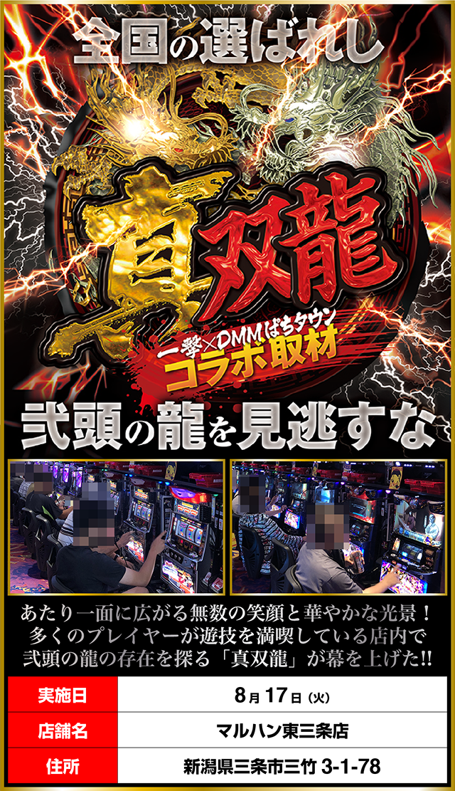 たくさんの笑顔を目にしつつ、「マルハン東三条店」が心から遊技を満喫できるホールであると感じた「真双龍」となった。