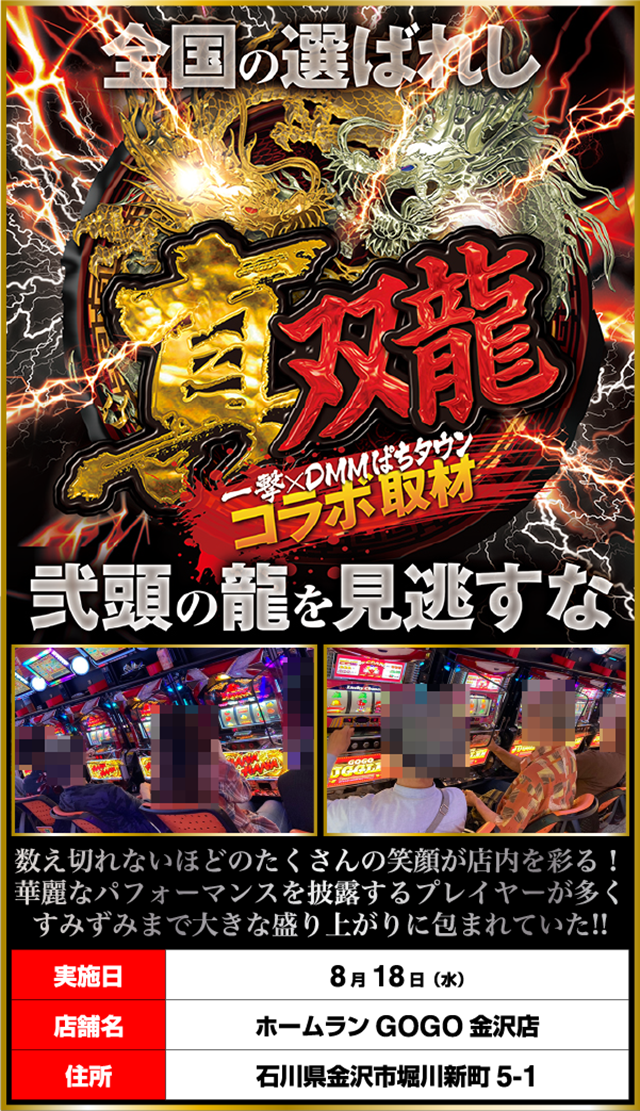 「ホームランGOGO金沢店」にて、「真双龍」をおこなった。