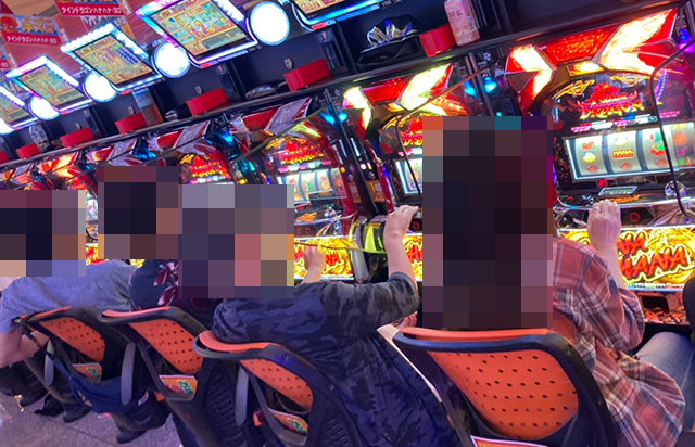 多くのプレイヤーが集まっている店内では、パチスロコーナーがとくに盛況。イキイキとレバーを叩いている姿を随所で目にした。