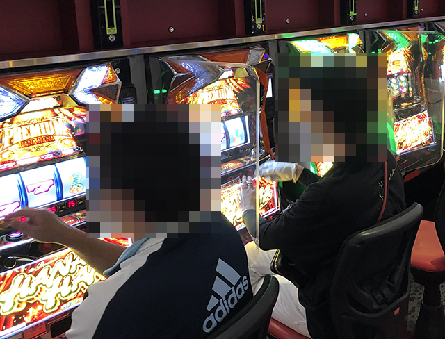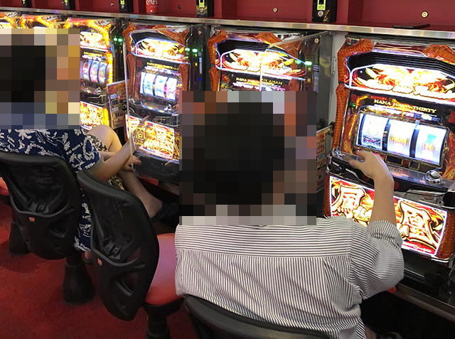 14時ごろにハナハナシリーズが並ぶシマをみてみると、あちこちに楽しげな姿があった。