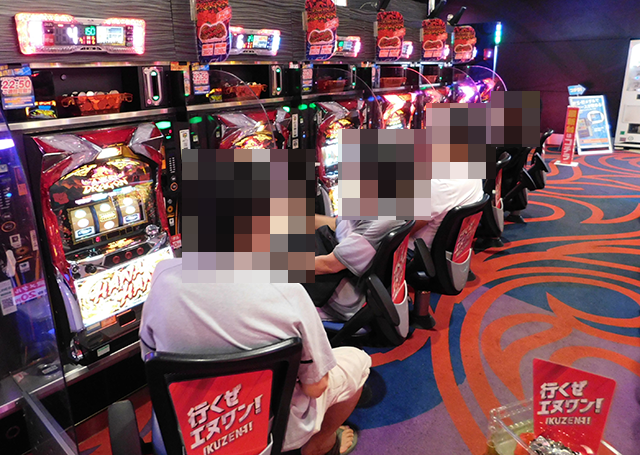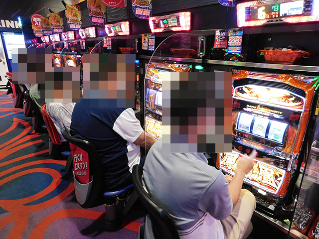 7台中5台が稼働していた「ハナハナ鳳凰-30」に広がっている光景も楽しげ。