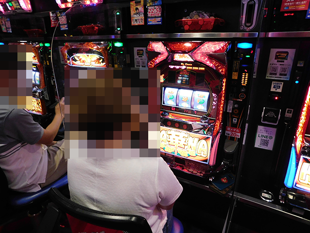 隣に設置された「スーパーハナハナ-30」にもイキイキと遊技をおこなっている姿があり、機種の性能を引き出していることがうかがえた。
