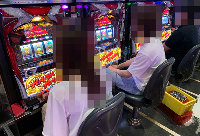 パチスロコーナー全体が活気づいているなかで、もっとも盛況であったのは『ツインドラゴンハナハナ-30』!