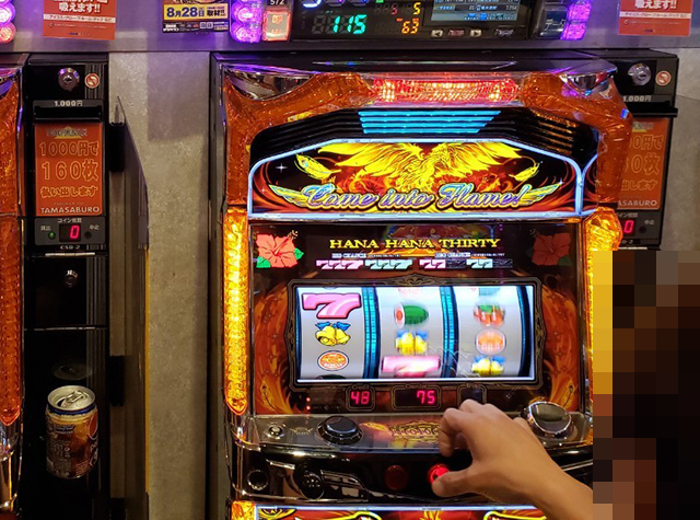 イキイキと遊技をおこなっている姿は「ドリームハナハナ-30」でもみられ、機種の魅力を味わえていることが伝わってきた。