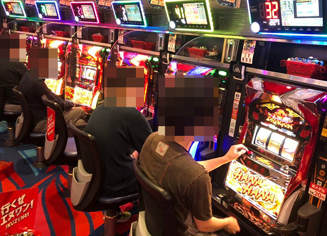 午後のパチスロコーナーでは、ハナハナシリーズがとくに活気づいていた。