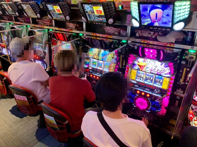 パチスロ全体では、218台中97台がプラス、トータルの差枚数は+654枚という結果だった。