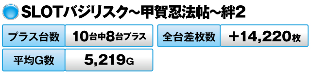 10台中8台がプラスで全台差枚数は+14,220枚を記録した。