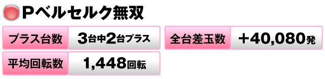 3台中2台がプラスで全台差玉数は+40,080発をマークしている。