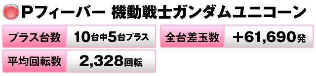 10台中5台がプラスで全台差玉数は+61,690発を記録。