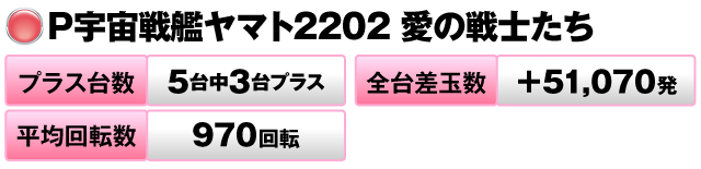 5台中3台がプラスで全台差玉数は+51,070発だった。