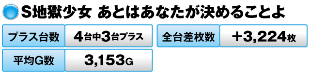 4台中3台がプラスで全台差枚数は+9,444枚だった。