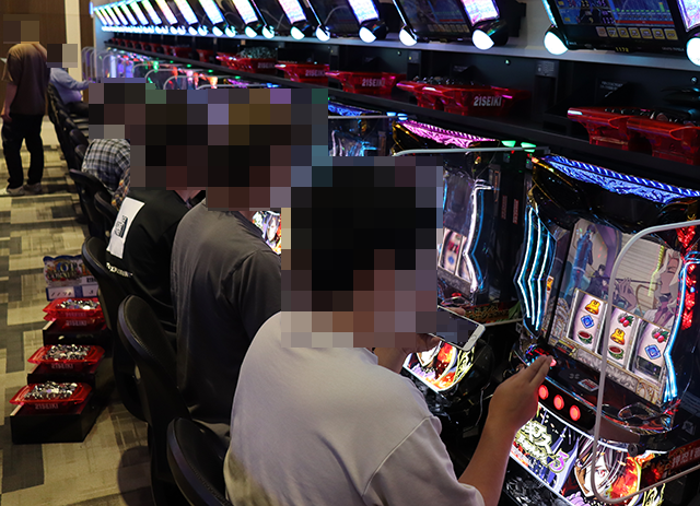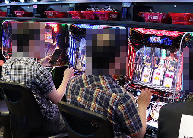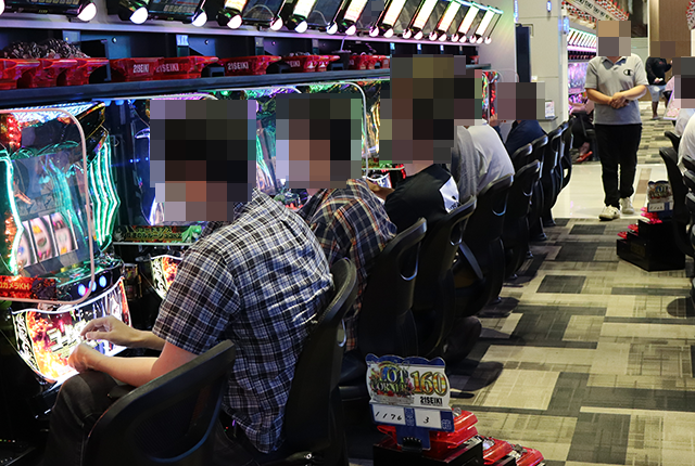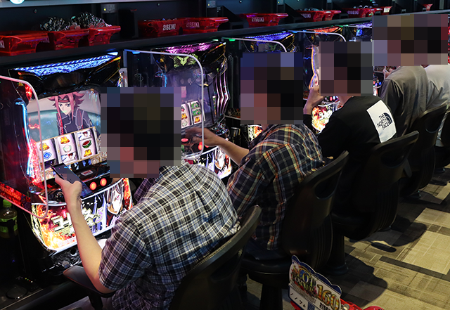 パチスロの各シマをまわっていると、さまざまな機種で遊技を満喫しているようなプレイヤーを目にした。