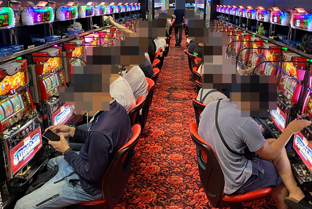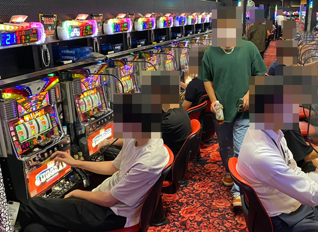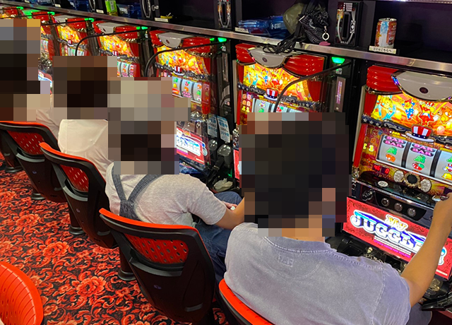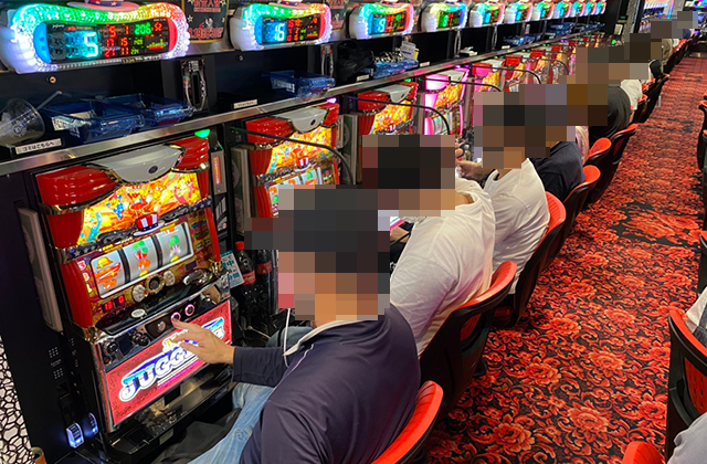 店内はジャグラーシリーズを中心に盛況となっており、随所に笑顔が広がっていた。