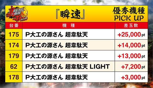 「P大工の源さん 超韋駄天」の175番台が+25,000pt!