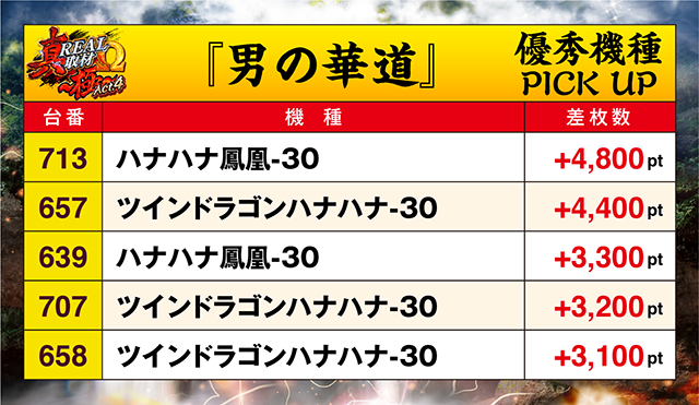 「ハナハナ鳳凰-30」も2台が+3,000ptを上回った。